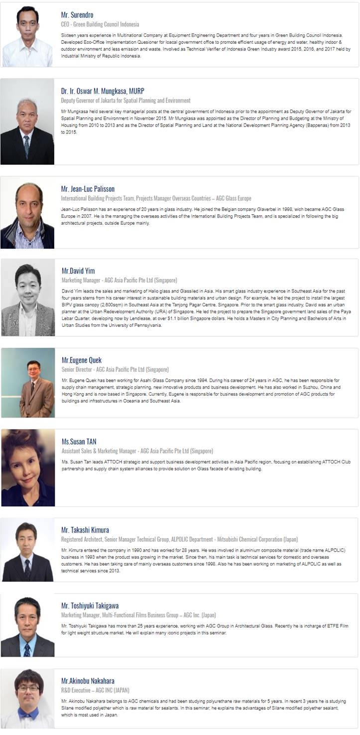 Mr. Toshiyuki Takigawa has more than 25 years experience, working with AGC Group in Architectural Glass. Recently he is incharge of ETFE Film for light weight structure market. He will explain many iconic projects in this seminar.